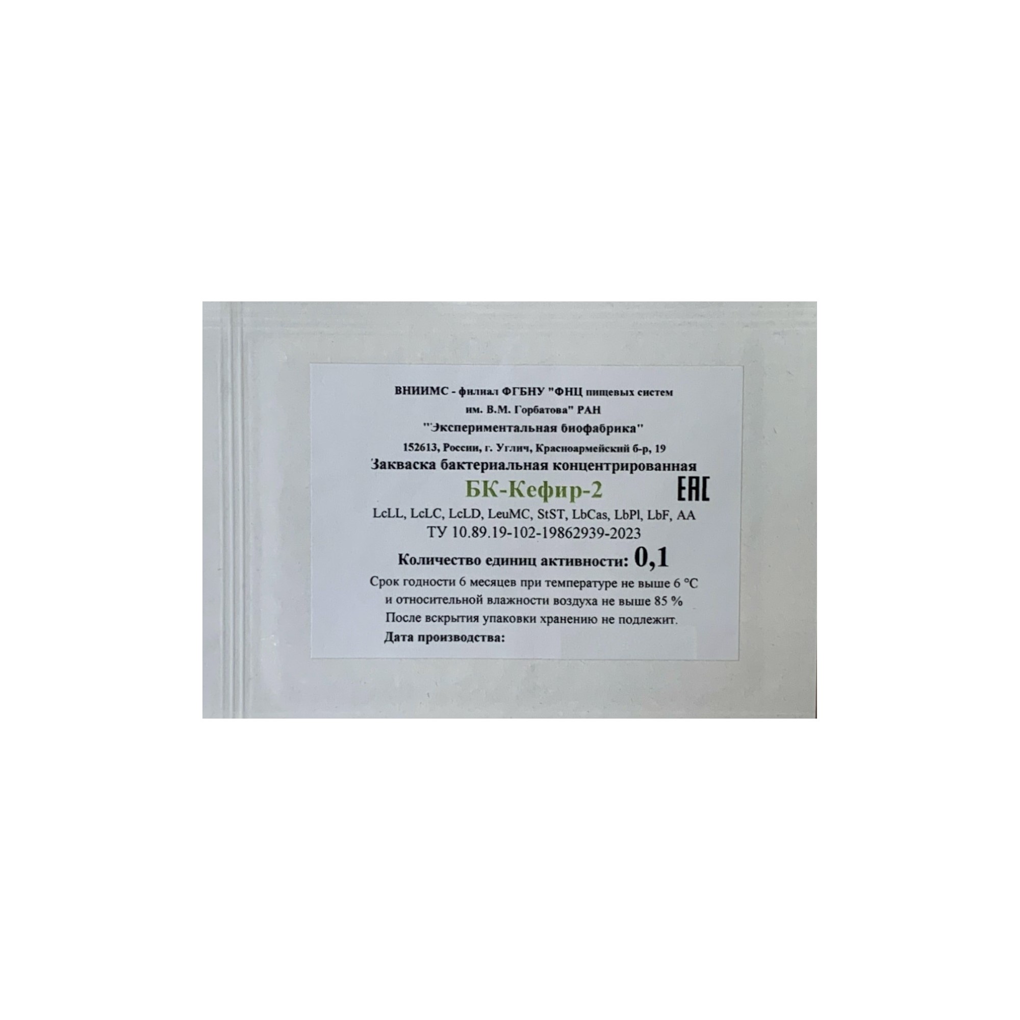 БК-Кефир-2 - концентрат лактококков, молочнокислых палочек, уксуснокислых бактерий, термофильного стрептококка для кефирного продукта